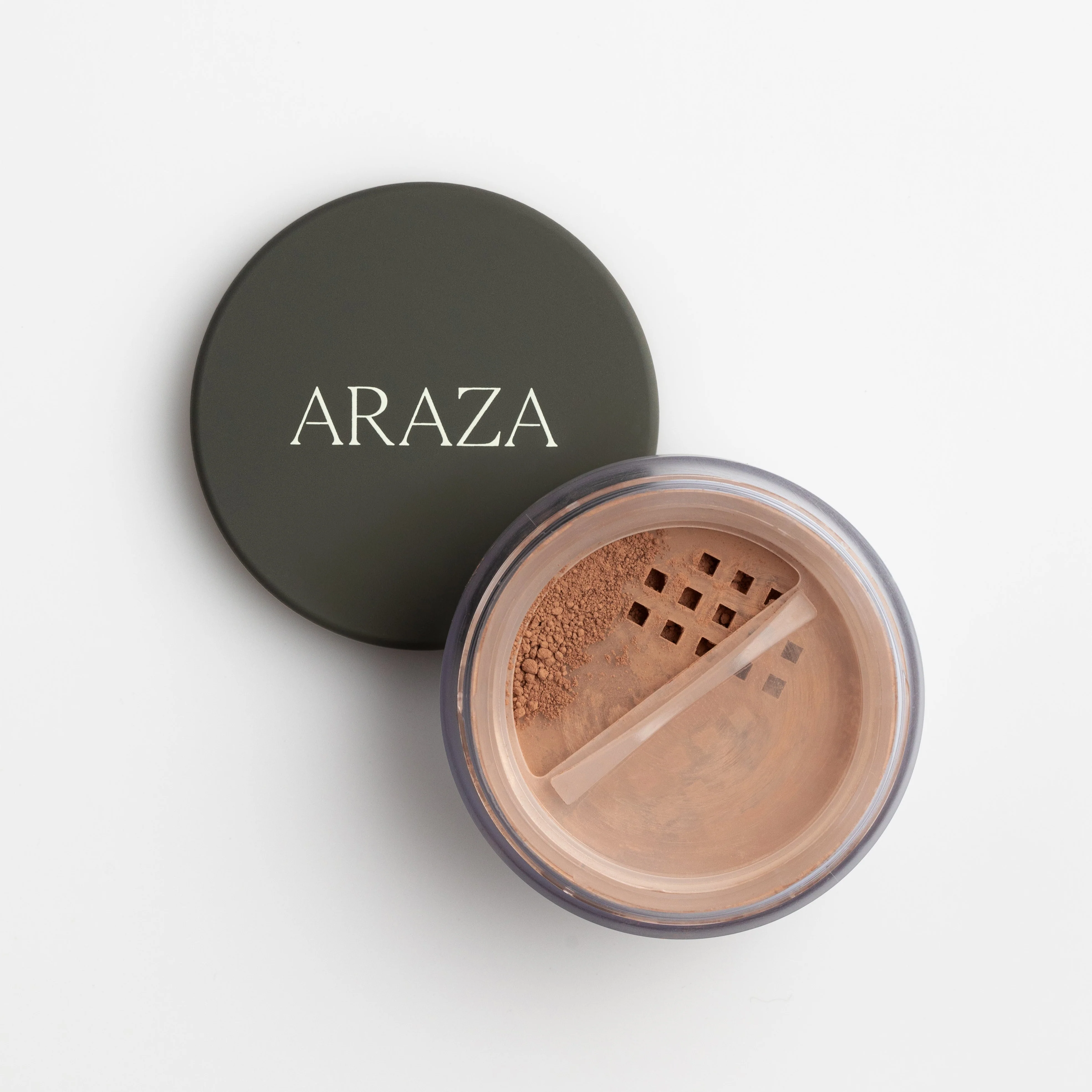 Bask in a sunny, healthy glow with a mineral-rich loose powder bronzer full of skin superfoods. Fresh earth pigments give this ultra-light powder a soft, pillowy texture that creates an effortless wash of warmth for luminous depth and dimension. Infused with wild-picked araza fruit and neem seed extracts, it delivers an antioxidant boost to create healthier-looking skin while enhancing your natural glow.